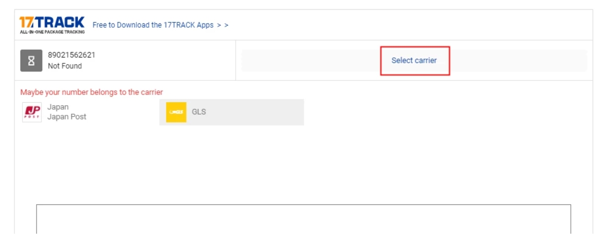 Why is there no carrier assigned to my tracking number and what do I select under “Select Carrier”?