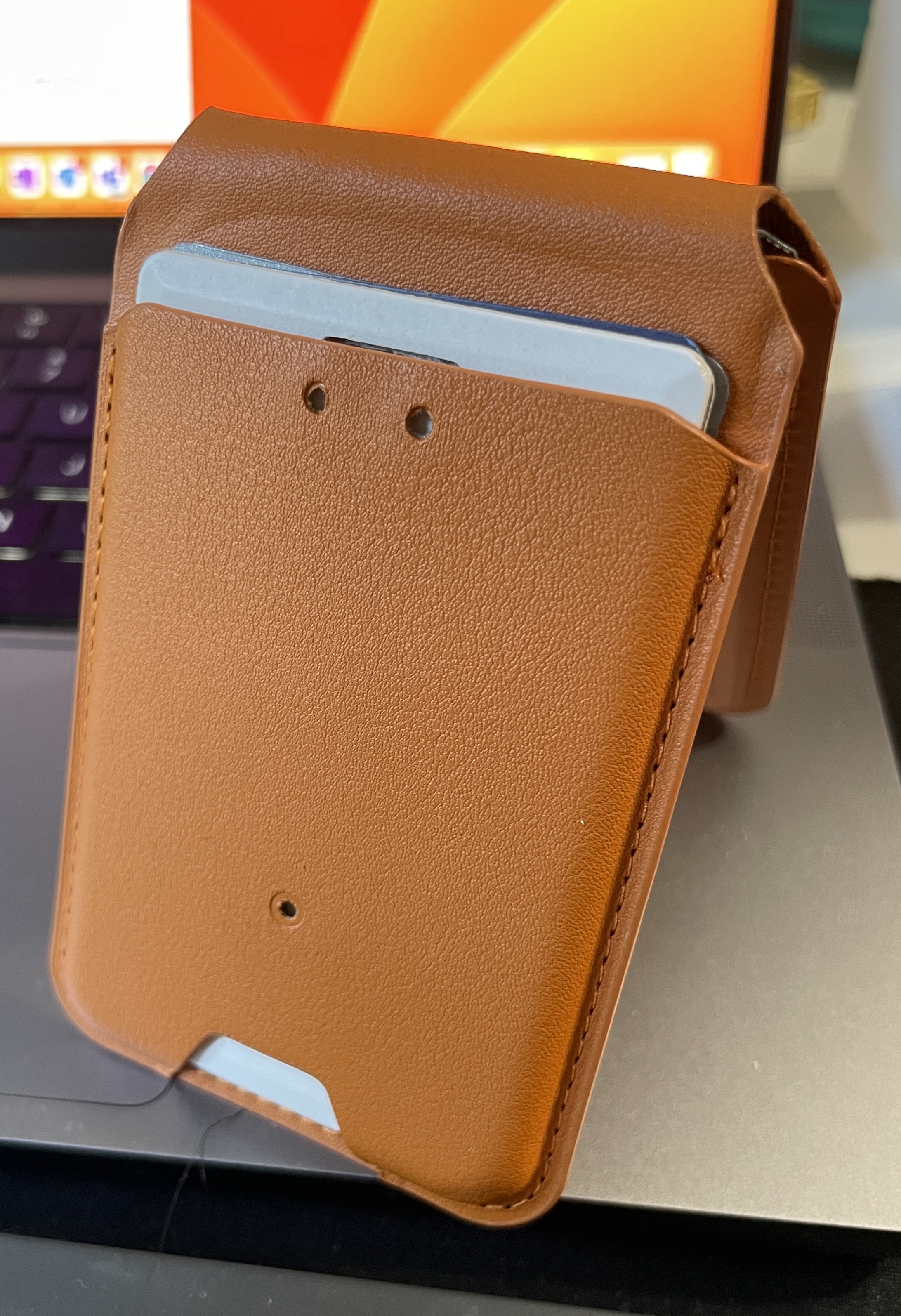 ESR makes incredible products. This one has great functionality, fits 3 cards comfortably, has great colour (brown/tan) and texture, although it could have an additional small folded cash compartment. Find my functionality works flawlessly. I do keep a passport wallet for IDs, cash and other cards, so this works for me.
